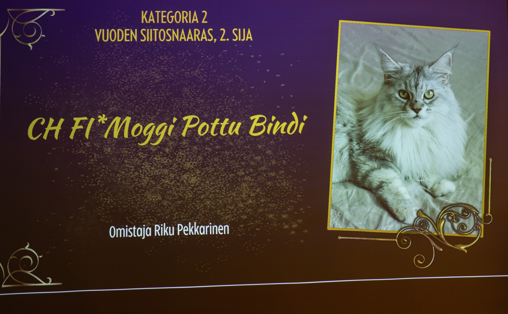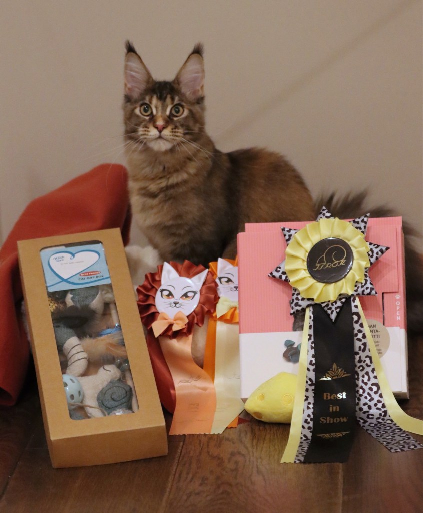 Vuosi 2024; Kissaliitto (Fife), 4. paras Maine Coon kasvattaja, Kissaliitto (Fife), 9. paras kategorian 2 kasvattaja (28), Itä-Suomen Rotukissa yhdistys 2. paras Maine Coon kasvattaja, Itä-Suomen Rotukissa yhdistys 2. paras kasvattaja kategoriassa 2, Suomen Maine Coon kissat ry, 5. paras Maine Coon kasvattaja