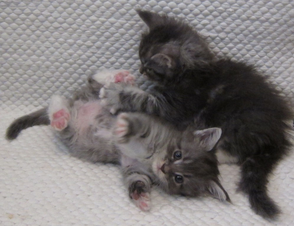 Jokunen aika sitten kävimme Countrypoliksessa myös ”luovuttamassa verta”. Rokotuksiin verrattuna se käynti oli muutamaa astetta vaikeampi, kun piti saada otettua verta riittävästi useita tutkimuksia varten. Verta kyllä riittää, mutta veren luovuttajat ovat liikkuvaa sorttia. Näyttely oli edessä, mistä syystä karvojen ajelua näytteenottokohdasta ei tehty. Tuolloin tutkittiin FeLV (leukemiavirus), FIV (kissan immuunikadon aiheuttama virus kissojen HIV), SMA (spinal muscular artropia), HCM geenin olemassa olo (hypertrofinen kardiomyopatia, sydänlihassairaus) ja veriryhmä.