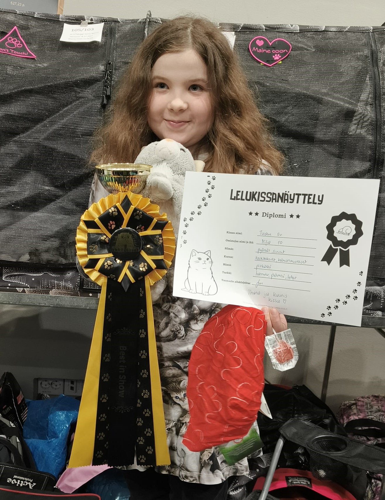 Congratulations to breeder Annika Eriksson. Minni also had her trophy from Suomen Maine Coon kissat ry cause she was last years BEST JUNIOR FEMALE delivered from Hämeenlinna by Henna.