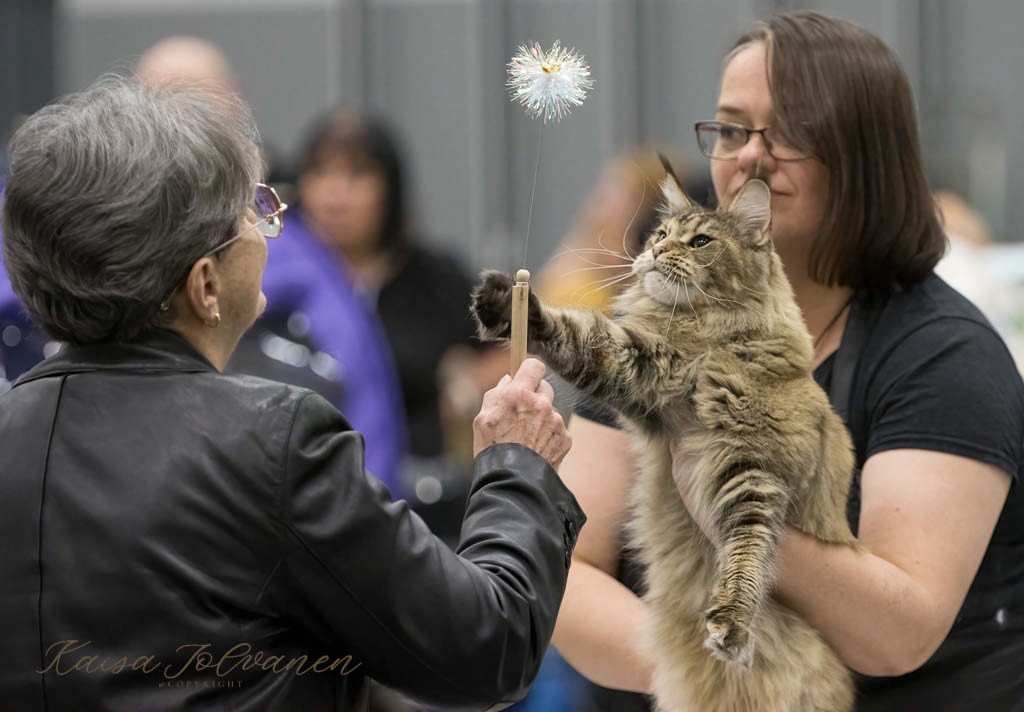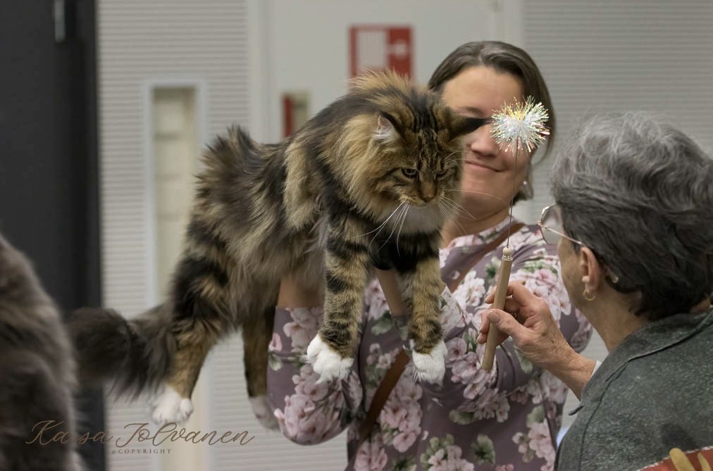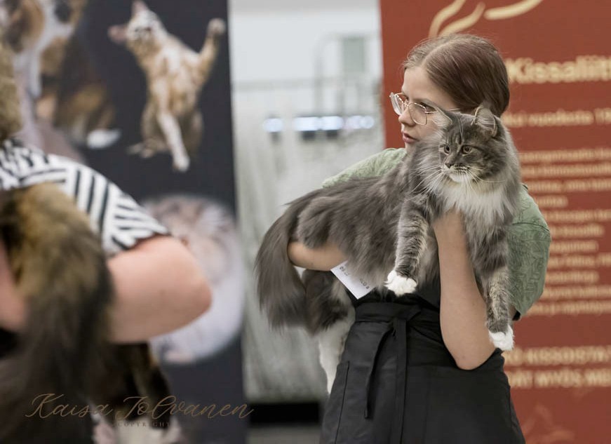 SC FI*Moggi Yum Coen, KM, NOM, CH FI*Moggi Sisko Suffragetti, EX1 CACIB, and she became International Champion, JCH KCH FI*Moggi Genuine Hill Billy JW, 11 (Nuoret), EX1 CACJ BIV, GIP FI*Moggi YAnis Lambert, EX1 CAPS, FI*Moggi Pallosalama, 9 (Avoin), EX1 CAC, JCH KCH FI*Moggi Silver Pearl, 11 (Nuoret), EX1 CACJ, FI*Moggi Balder The Brave, 12 (Pennut), EX1 CACC and he became Kitten Champion.