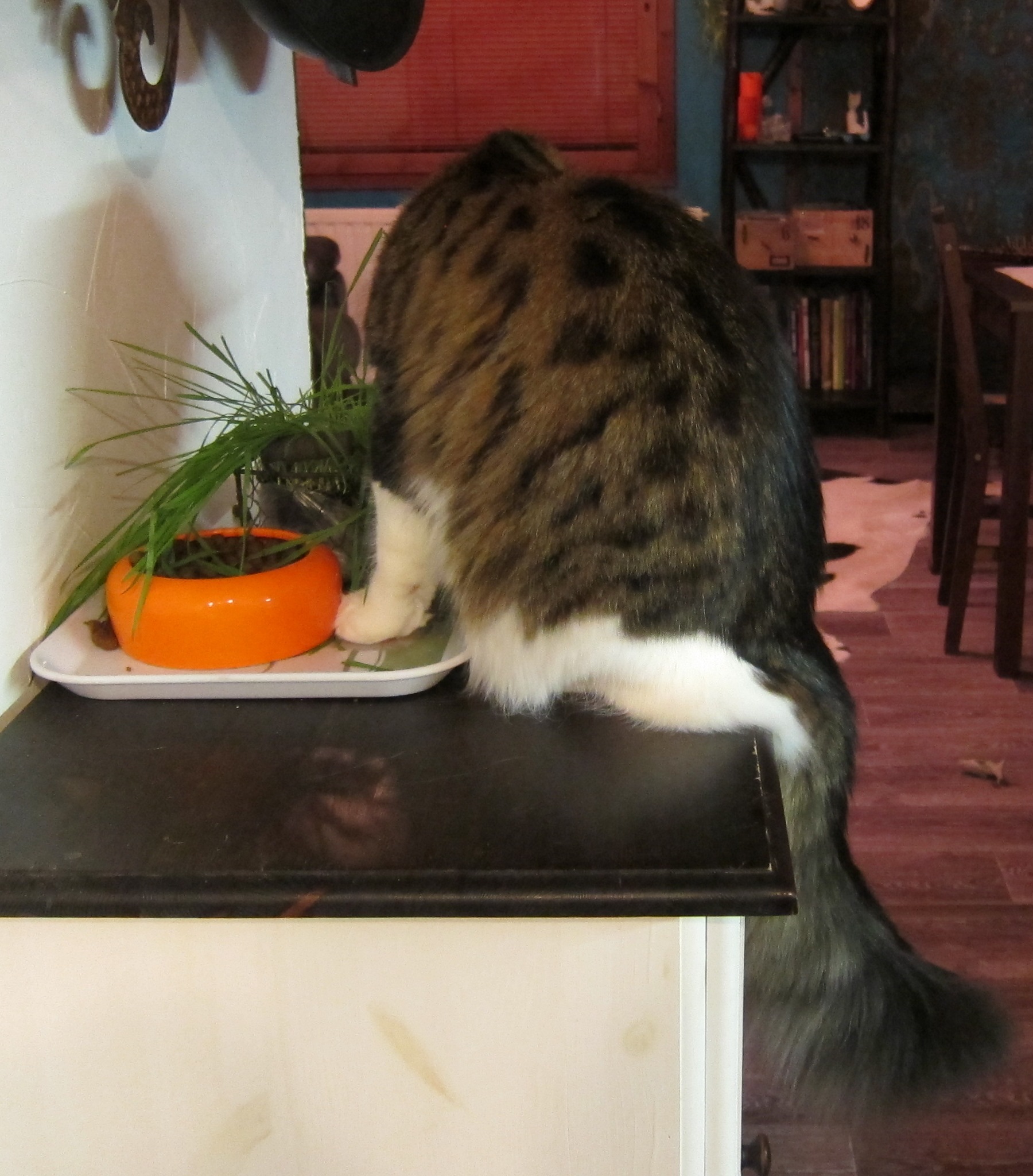 Lahdessa 24 – 25.1.2015 Moggi Cate Pilleri odottelee vuoroaan. Sunnuntaina osallistuimme leikkiin mukaan, luokassa 7 lauantaina tulleen sertikaton vuoksi, kokemusmielessä ”out of competition”.