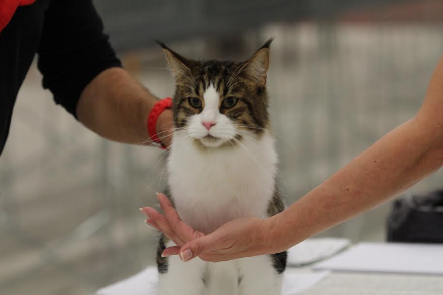 Kategorian II, Best in Show kilpailussa Pastillia jännitti, mutta pöydällä ja assistentin käsissä hän pysyi hienosti. Kiitos mukavalle assistentille. Tuossa kilpailussa voiton vei toinen kaunis MaineCoon pentu.